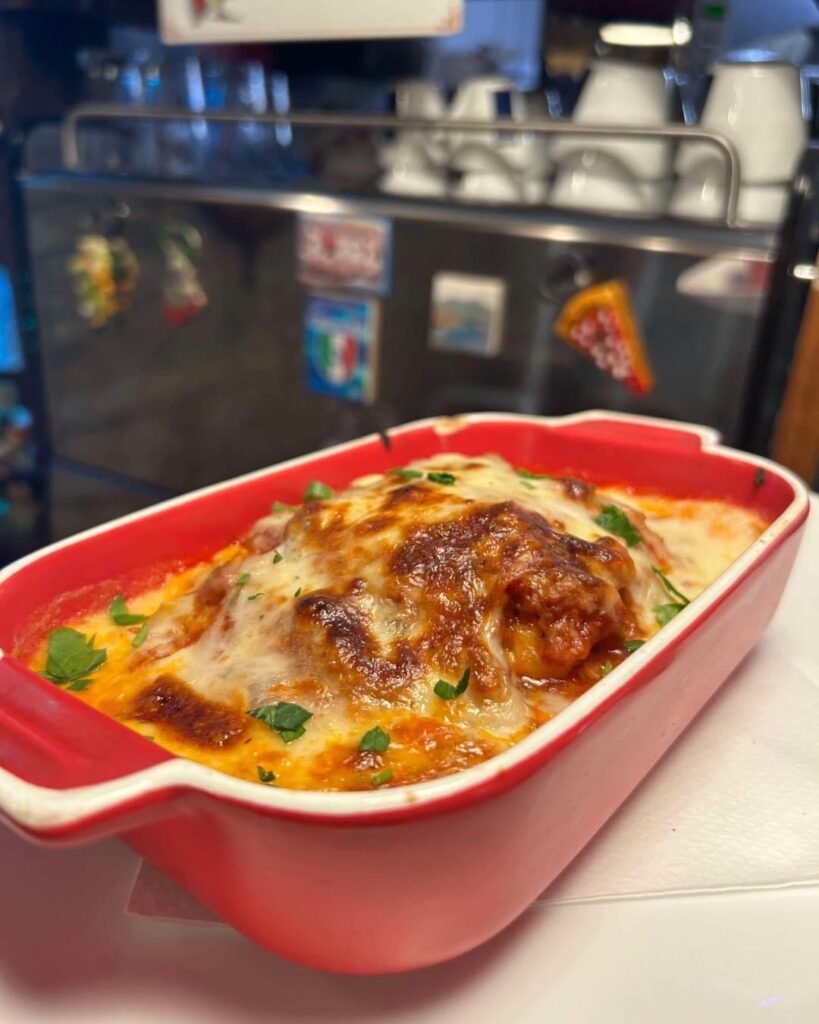 £12.50Layers of pasta with bolognese, bechamel and tomato sauce, topped with mozzarella cheese