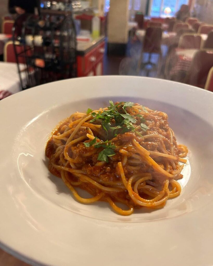 £12.50Pasta served with minced beef in a rich Italian sauce